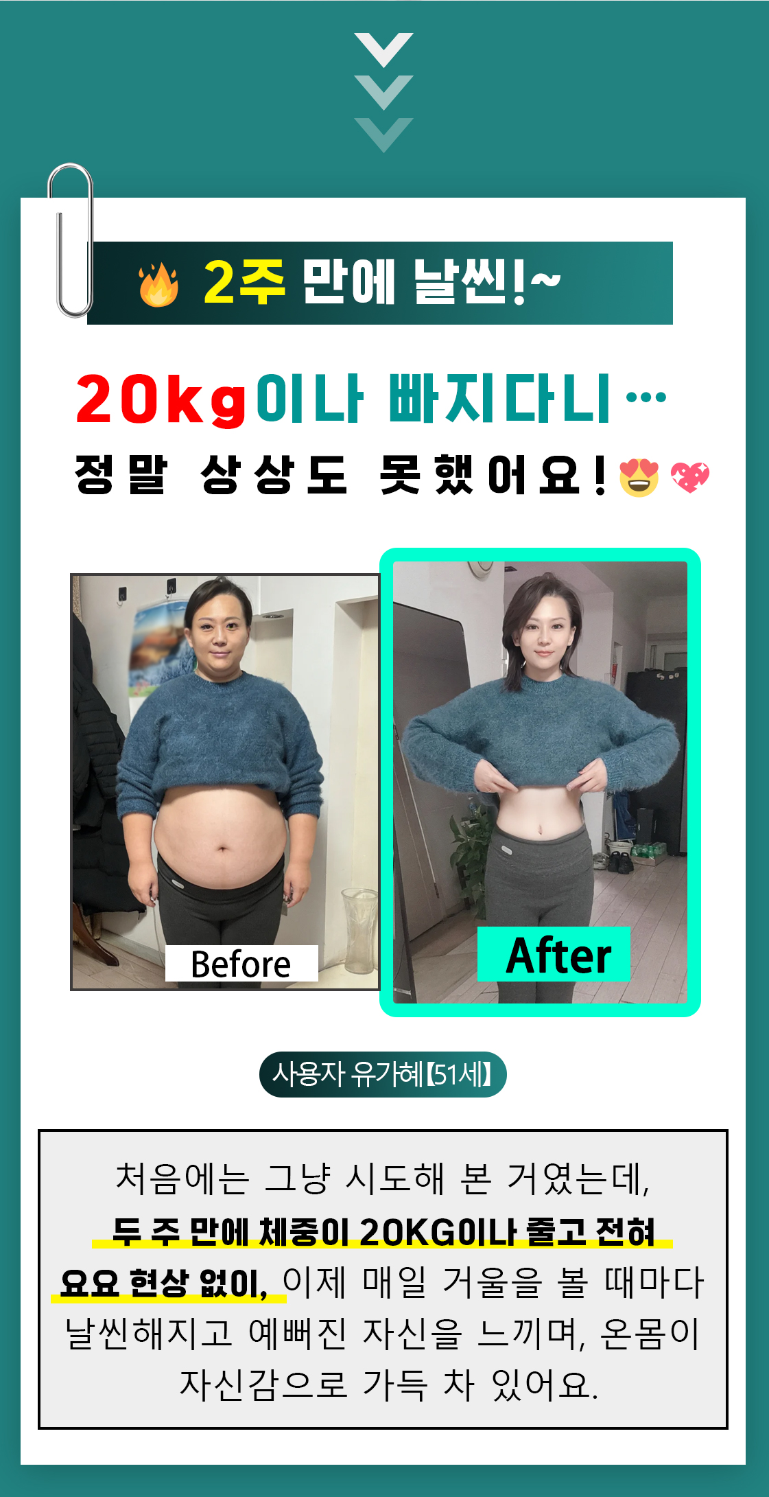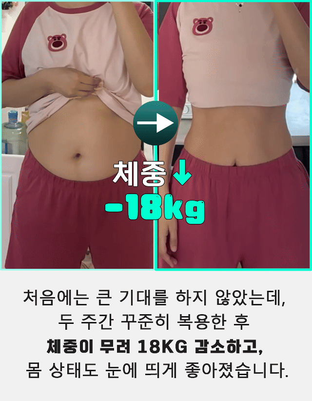2주 정도 써봤는데 13kg 감량했고, 허리랑 복부가 눈에 띄게 줄었어요. 몸도 훨씬 가벼워졌고, 연예인도 같은 제품을 쓴다니까 더 안심돼요.